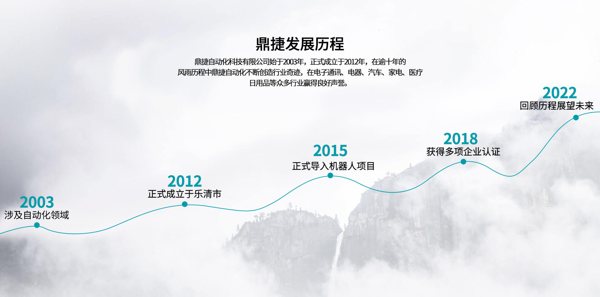 公司始于2012年,在逾十年的風雨歷程中,不斷創(chuàng)造行業(yè)奇跡,在電子通訊、電器、汽車、家電、醫(yī)療、日用品等眾多行業(yè)贏得良好聲譽。公司坐落于浙江省樂清經(jīng)濟開發(fā)區(qū),現(xiàn)有人員63人,擁有經(jīng)驗豐富的工程技術(shù)研發(fā)團隊11人,其中高級工程6人,具備本科以上學歷高級工程人員比例78%;同時鼎捷自動化在蘇州,東莞等地設(shè)立分公司以服務(wù)目標市場客戶,目前鼎捷自動化已經(jīng)為下客戶提供配套自動化解決方案:泰科、安費諾、莫士、華為、中興、普聯(lián)、智英、意華、德豐、公牛、萬事達、華豐、飛雕、普思、冠聯(lián)、俊朗松田、進聯(lián)、高正、盛凌等。鼎捷自動化專業(yè)從事連接器、開關(guān)及相關(guān)電子、電器、五金、塑膠產(chǎn)品組裝自動化定制、設(shè)計、制造、銷售。2012年,鼎捷自動化正式導入機器人應用項目,可為各類客戶提供電子、電器、汽車、五金、塑膠等集成自動化智能組裝系統(tǒng)。